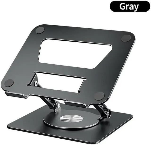 Rotatable Laptop Stand Foldable Notebook Stand Holder Adjustable Non-slip Portable 11-16 Inch Aluminum Features: 360° Rotatable With a 360° rotatable turntable attached to the base, this laptop stand is supported by strong axis, allowing its top half to swivel flexibly to any angle,so it's perfect and convenient for you to share the laptop's screen to your partners especially for collaborative work at the meetings. Wide Compatibility This laptop stand fits all laptops from 10 -17 inches, and it's compatible with brands such as MacBook Pro/Air, Dell, Lenovo, HP, ASUS and more notebooks. Foldable & Sturdy This lightweight laptop can be fully folded up for easy storage, which makes it portable and convenient to carry and used anywhere. Made of thickened aluminum alloy, it's super sturdy to support as much as 8.5KG (18 LBS) and holds your laptop firmly in place. Adjustable & Ergonomic Design Designed to be adjustable in height and angle, this laptop stand promotes you a healthy sitting posture since it elevates your laptop up to a more comfortable eye level, which prevents you from hunching over the screen or any pain in your neck or back. Heat Dissipation This laptop stand elevates your laptop with a rectangle-shaped support plate adopting the open hollow design to allow the air to freely circulate beneath it, protecting your laptop from overheating effectively.